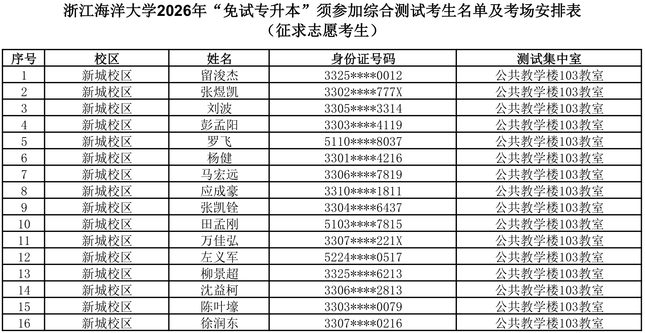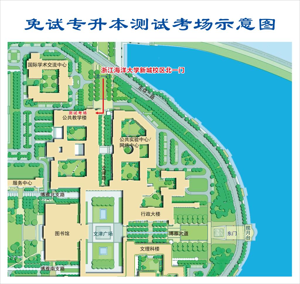 3.测试地点:浙江海洋大学新城校区公共教学楼(舟山市定海区临城街道海大南路1号),考生经人脸识别验证与安检后到准考证上指定的测试集中室报到。