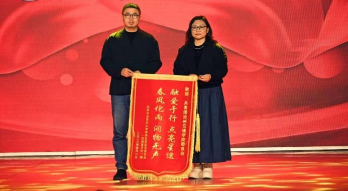 沧州星月社负责人王珍平代表沧州星月社为我校赠送锦旗