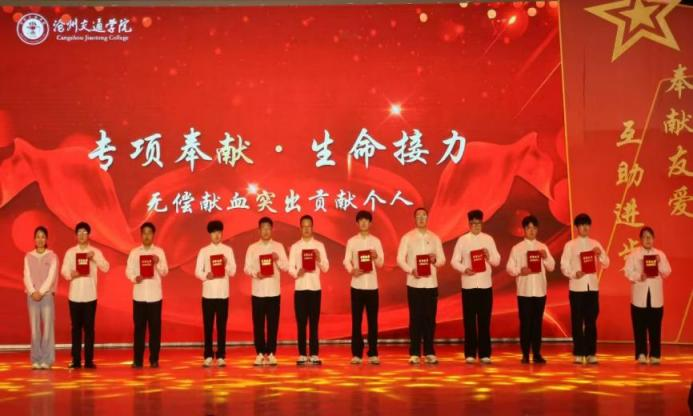 沧州渤海新区党工委黄骅市委社会工作部科长董欣为“无偿献血突出贡献个人”颁奖
