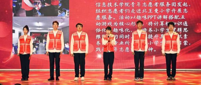授予经济管理学院“予她‘巾’喜,护她同行”、计算机与信息技术学院“站暖旅途,青春护航”、艺术学院“大手拉小手,美育润童心”、外国语学院“讲好中国故事,传播中国声音”、化学与制药工程学院“禁毒知识宣传”等5个项目“优秀志愿服务项目”荣誉称号。