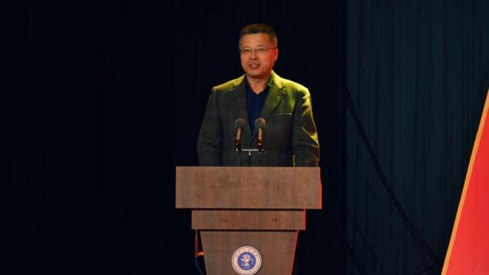 沧州市委社会工作部刘盛飞副部长发表致辞。他向大会召开及受表彰集体、个人致以祝贺与敬意,肯定了沧交志愿者的担当奉献,强调志愿服务是青年成长、高校服务社会的重要途径,期待校地深化合作,推动志愿服务与沧州发展同频共振,号召同学们在奉献中实现价值,共同助力沧州志愿服务事业高质量发展。