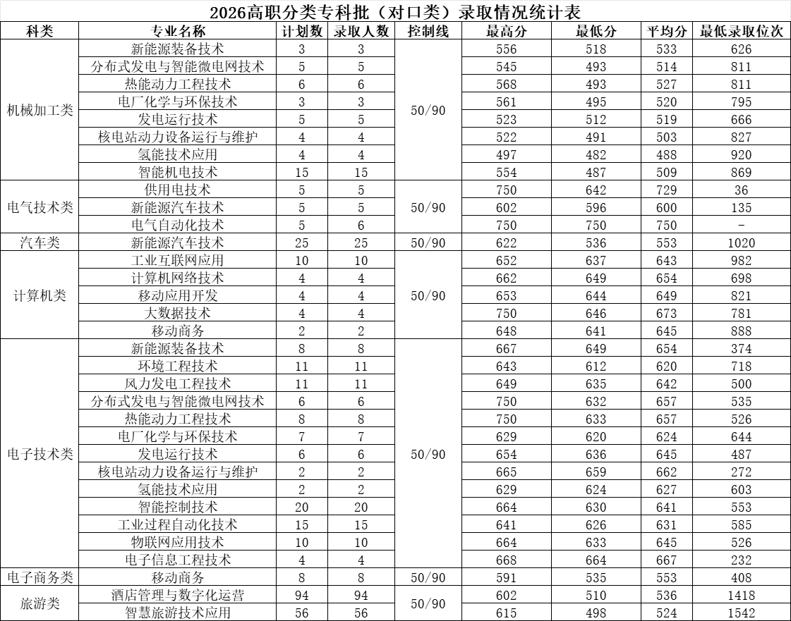 重庆电力高等专科学校2026年高职分类考试普通专科批(对口类)录取结果已出,报考我校普通专科批(对口类)考生可凭考生号、身份证件号码查询录取结果