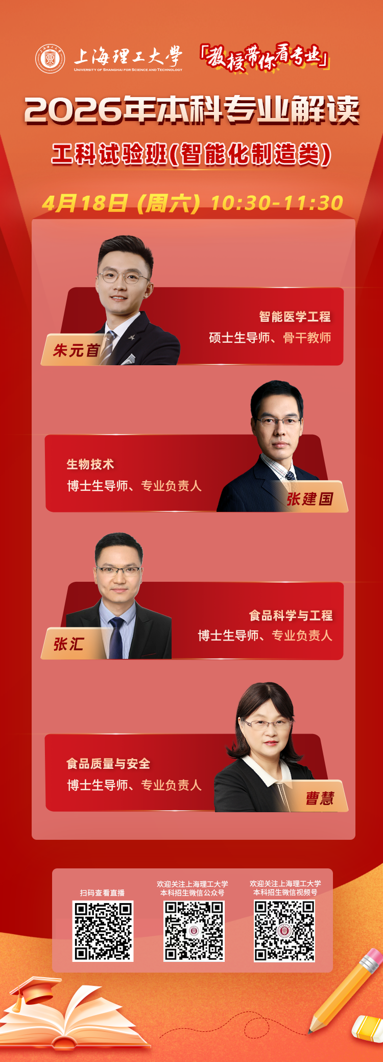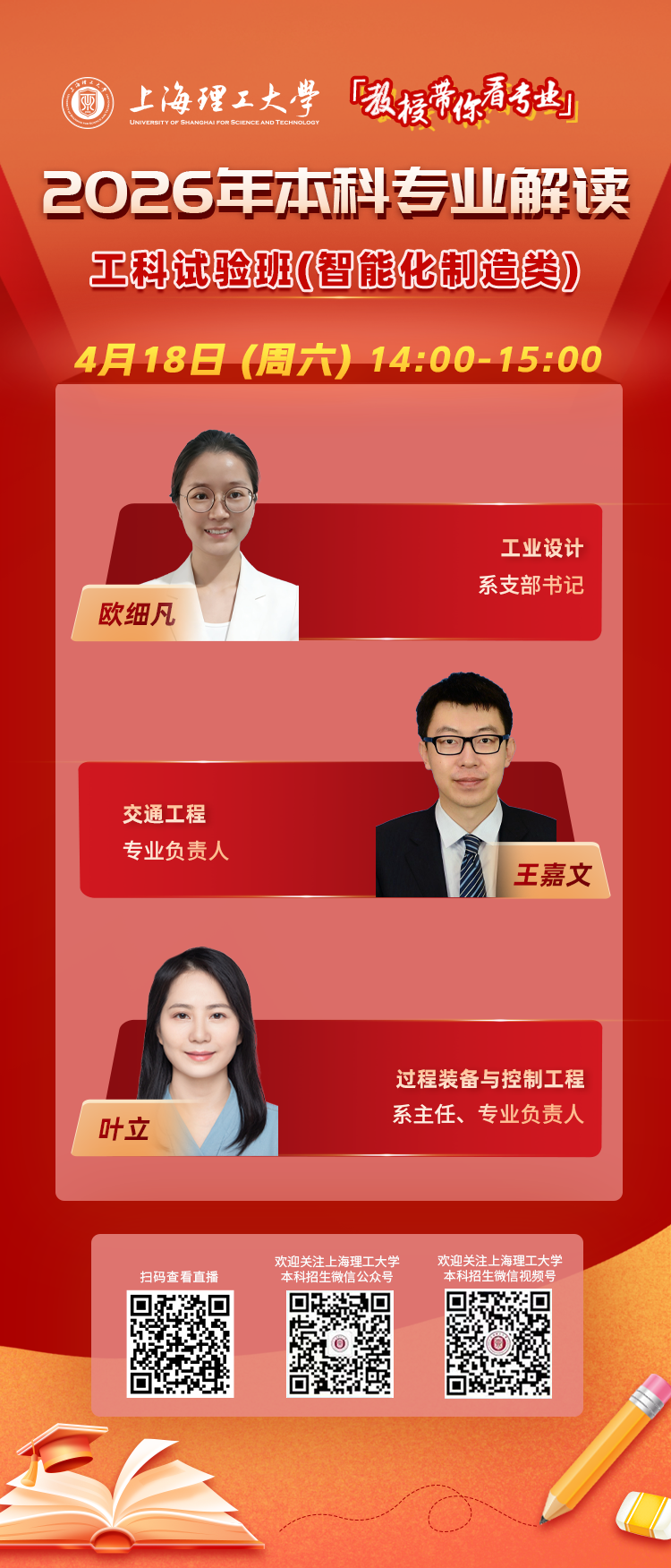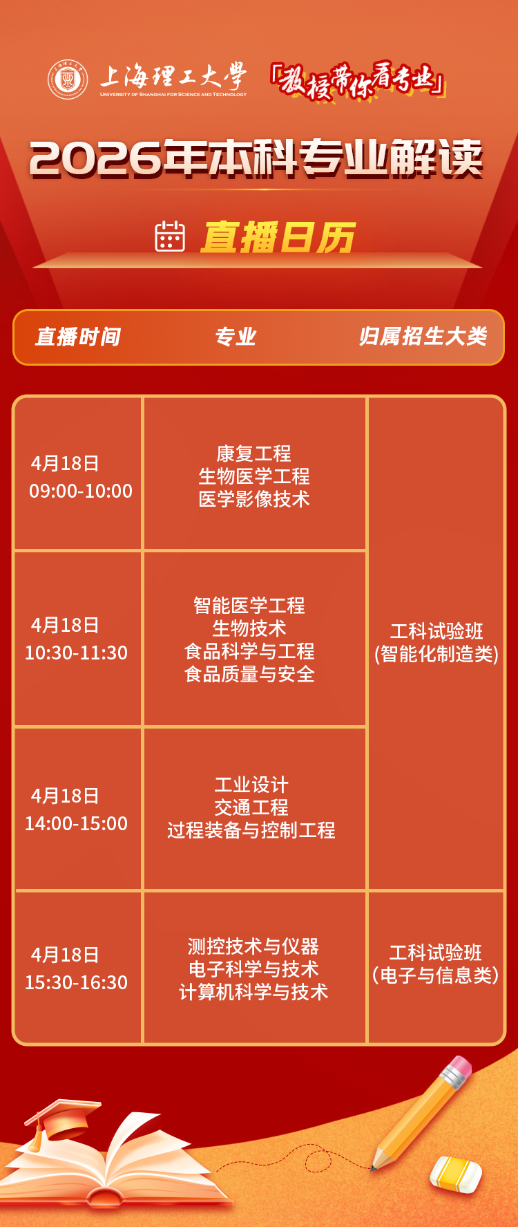 想对报考选择更有底气?想对未来规划更有方向?敬请锁定上海理工大学2026年本科专业解读系列直播!