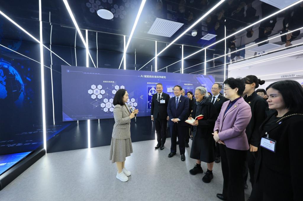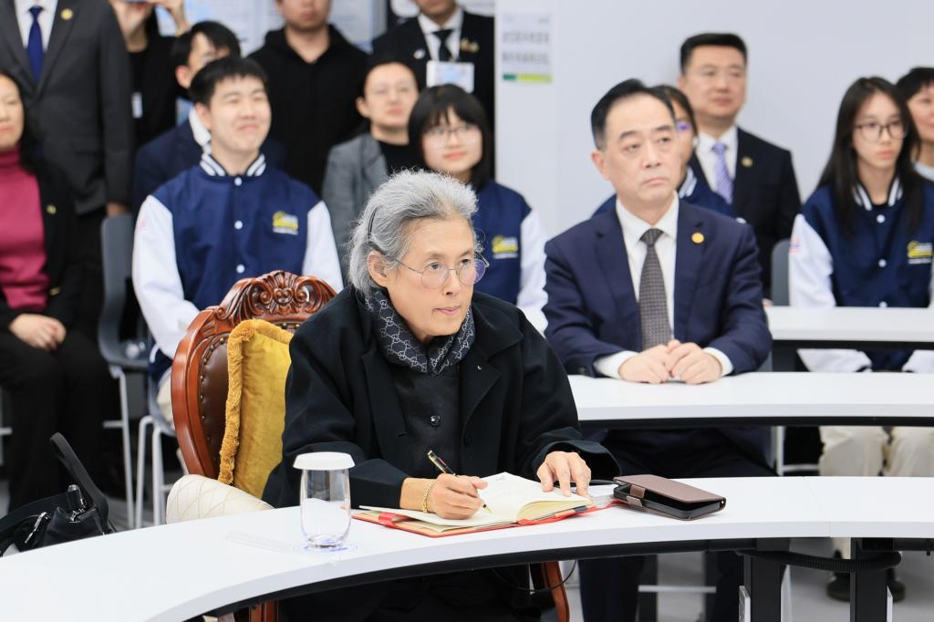 访问期间,诗琳通公主一行还参观了学校未来学习大楼和科技成果展厅,听取了相关教师的详细汇报,深入了解了学校建校70年以来的科研发展成就,以及在人工智能技术赋能教育、管理与科研方面的最新进展。