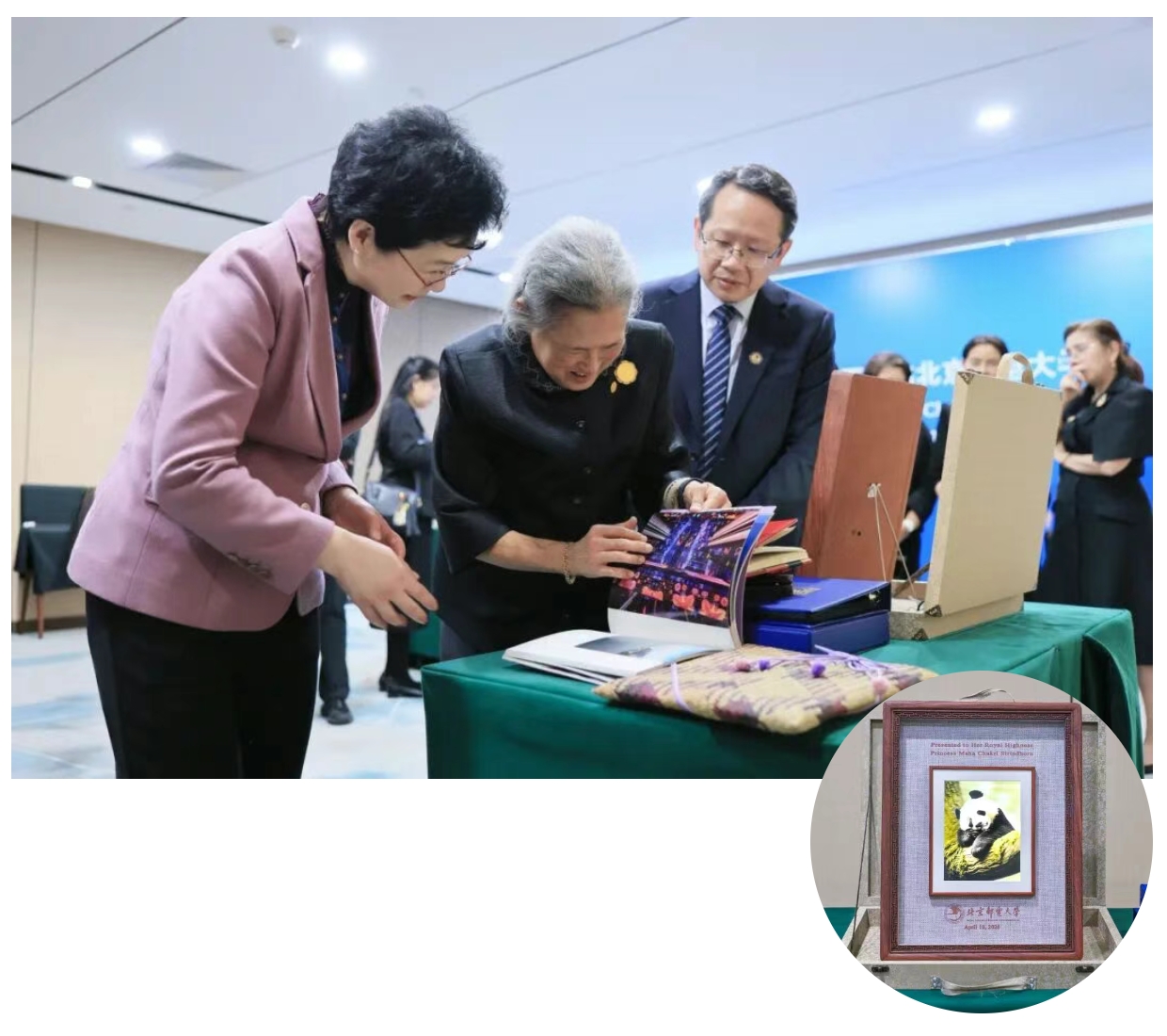 作为回赠,学校向诗琳通公主赠送了由我校教师团队自主研发的熊猫主题裸眼 3D 画框。大熊猫作为和平与友谊的象征,承载着北邮师生的美好祝愿,愿中泰两国人民的友好情谊历久弥坚、愈发深厚。