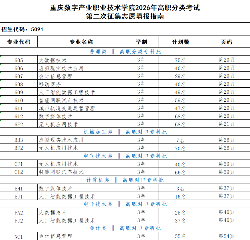 重庆数字产业职业技术学院2026年高职分类考试第二次征集志愿填报指南