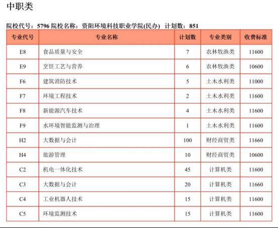 3. 资阳环境科技职业学院招生代码为5796,填报时请仔细核对。