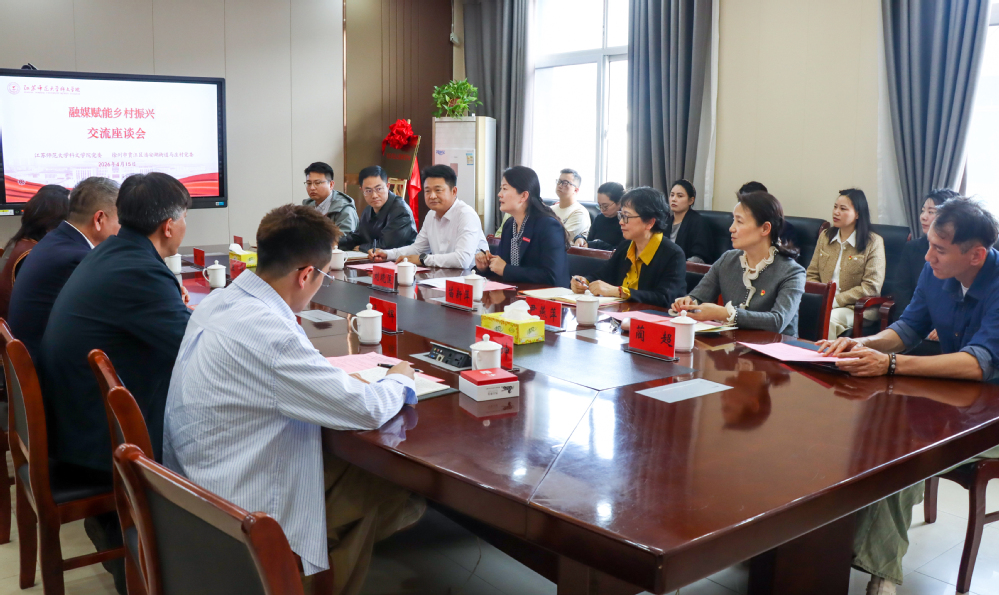 4月15日,学院与马庄村举行校地共建推进会。院党委书记刘晓莲、潘安湖街道党工委书记李鸿鹄、马庄村党委书记王侠等出席活动,传媒与设计学院负责同志、师生党员代表以及马庄香包产业相关负责人参加活动。