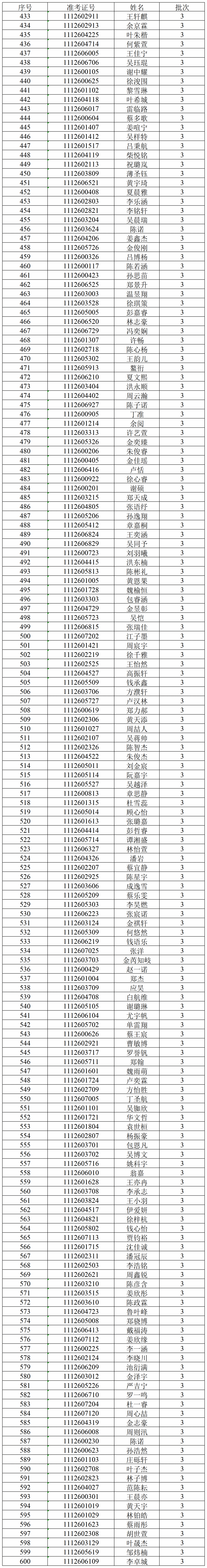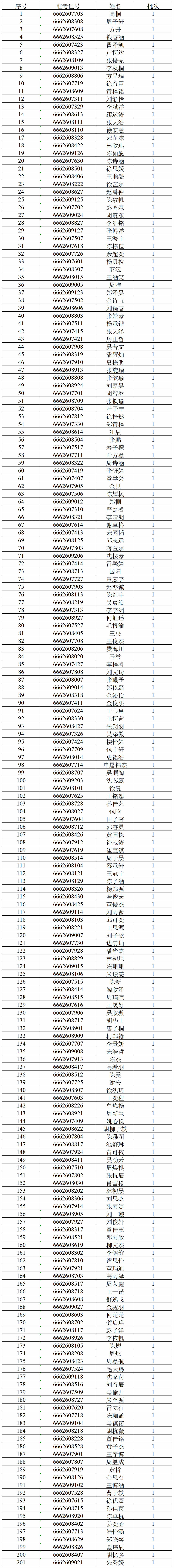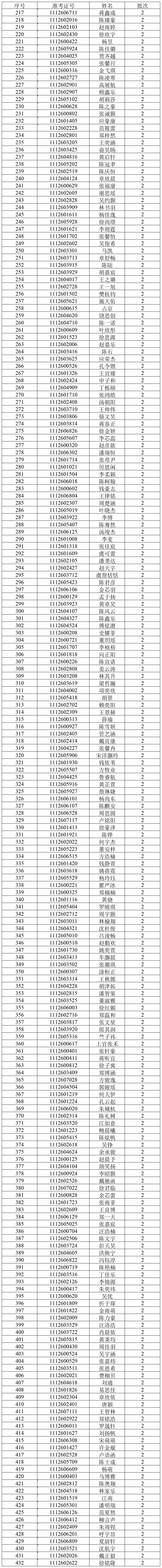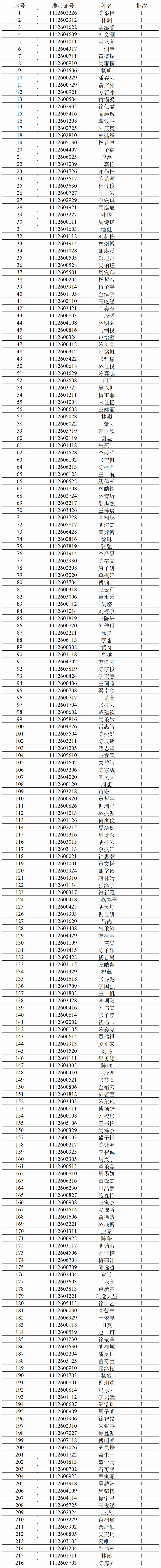 经我校“三位一体”招生综合评价笔试,按各招生类别招生计划数1:4比例,成绩从高到低排序(末位成绩出现并列者同时获得面试资格),以下考生获得面试资格。请入围面试考生于明天(4月19日)按照规定时间,至温州医科大学茶山校区同济楼(6号楼)一楼大厅报到并参加面试。考生迟到超过规定的综合素质测试面试报到时间15分钟以上,视为弃考。