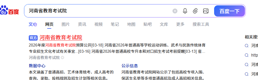 找到正确的报考网址考生登录河南省教育考试院官网(https://www.haeea.cn/),或在搜索引擎中输入“河南省教育考试院”,点击带有“官方”标识的网站。
