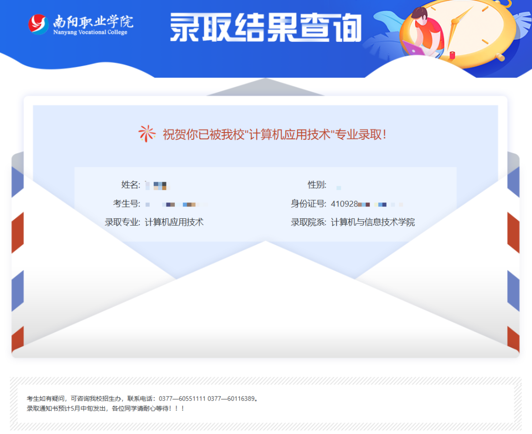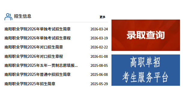 南阳职业学院2026年对口招生录取结果查询通知