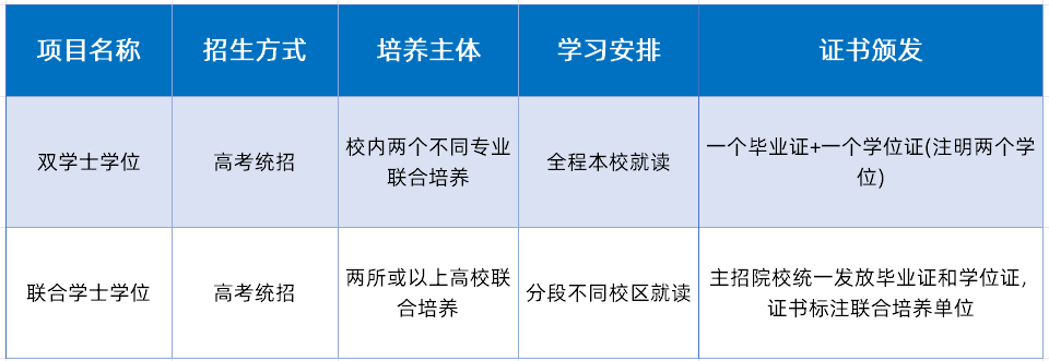 3.匹配自身特质,精准定位。“双学士学位”立足本校开展双学科深耕学习,专业衔接紧密连贯,更适合目标明确、自律性强,希望在单一院校深耕专业领域,愿意付出额外努力提升综合竞争力的学生。“联合学士学位” 依托多校联合培养模式,能够拓宽综合视野、丰富跨领域学识,更适合适应能力强、乐于挑战自我,渴望共享多校优质资源,依托跨校学习实现学科互补发展的学生。