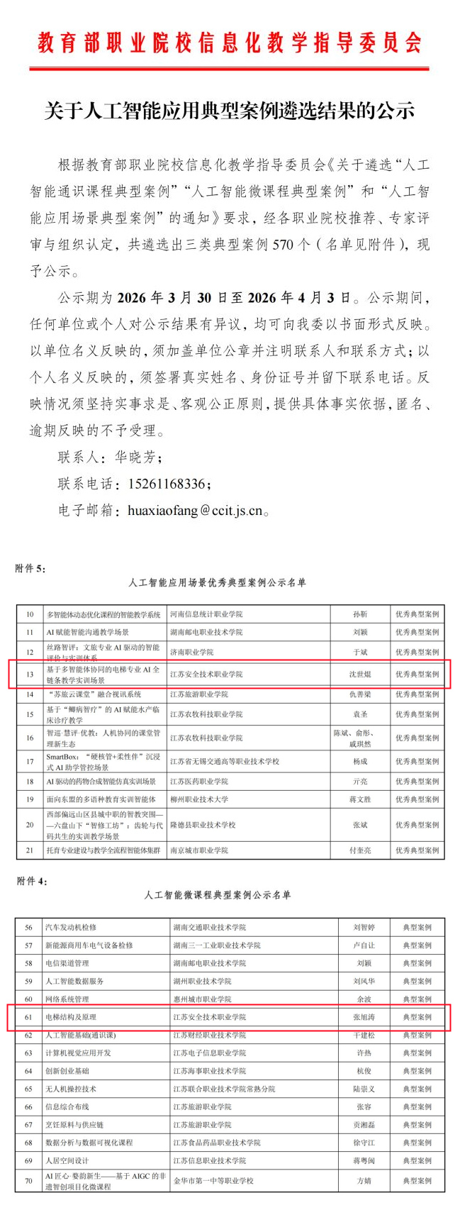 本次遴选旨在深入推进职业院校数字化转型,挖掘人工智能与教学融合的优秀实践,搭建交流推广平台,助力职业教育高质量发展,全国多所职业院校积极参与申报,我校立足“电梯安全”特色,整合优质教学资源,精心打磨申报成果,最终取得了两项成果双双入选的佳绩。