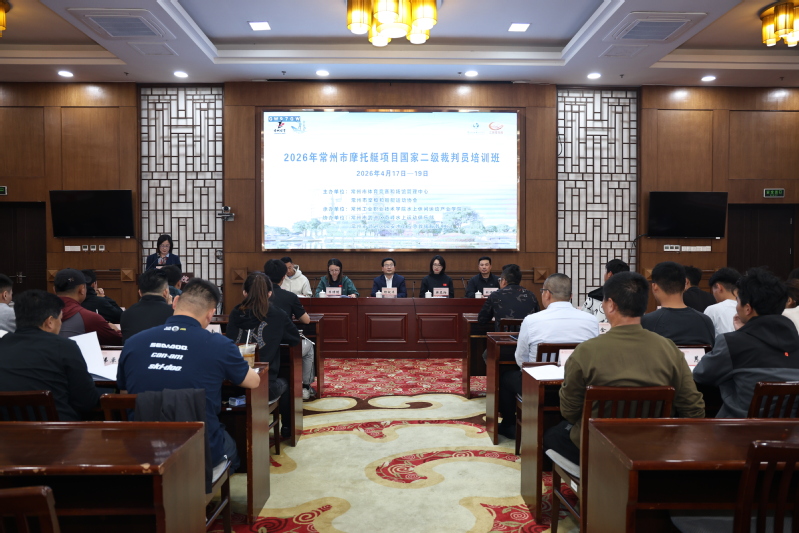 4月17日,2026年常州市摩托艇项目国家二级裁判员培训班在我校正式开班。副校长檀祝平、常州市体育竞赛和场馆管理中心部长樊晨阳、常州市桨板和船艇运动协会会长张琦峰、安徽省水上运动管理中心摩托艇项目教练李倩倩出席开班仪式。仪式由通识教育与体育学院党总支书记江小丹主持,来自省内外30多名参训学员参加培训。