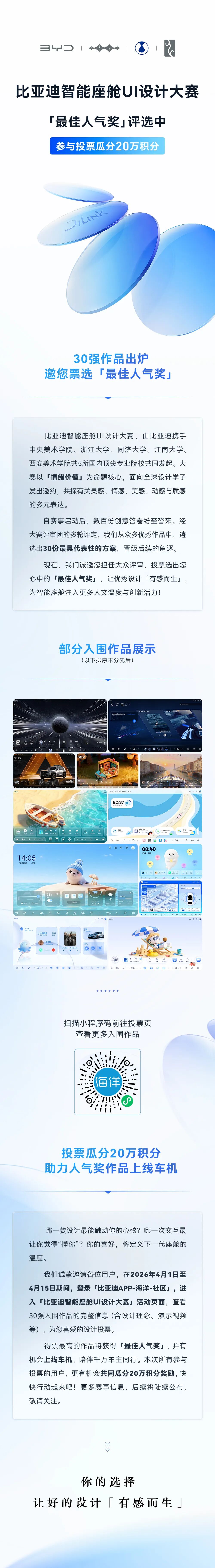 瓜分20万积分!比亚迪智能座舱UI设计大赛「最佳人气奖」评选中