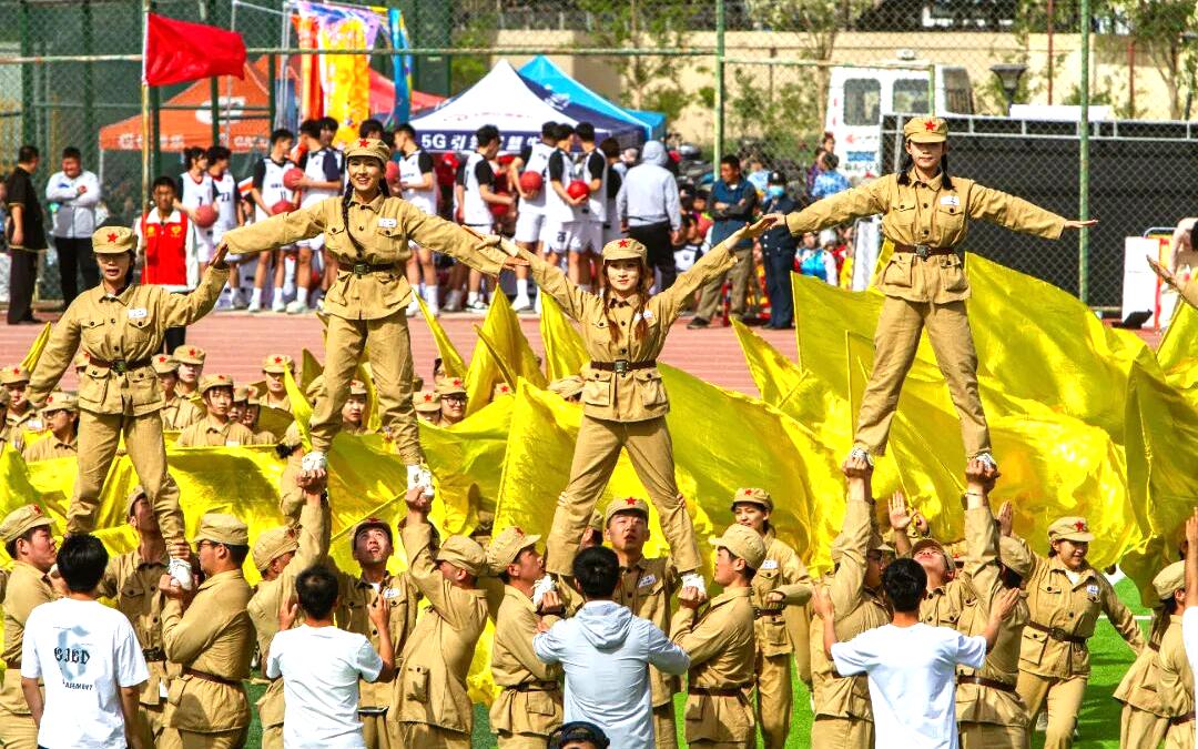▲运动会开幕式节目”砺兰跃峰“