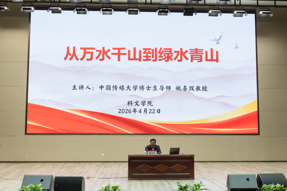 赠书仪式后,活动转入专题思政课环节。姚教授以《从万水千山到绿水青山》为题为同学们上了一堂生动的思政课。他深入浅出解读诗词艺术的时代内涵与价值意蕴,兼具理论高度、文化深度与现实意义,为在场师生带来一场内涵丰富、感染力十足的精神洗礼。在互动教学环节,多名学生先后登台朗诵,他逐一点评指导,从气息、停顿、情感表达等方面给予细致点拨。活动尾声,全场师生集体诵读《沁园春・雪》,激昂顿挫的语调、心系家国的情怀,将现场气氛推向高潮。“彭城诗会”启动仪式在气势昂扬的诵读声中圆满落下帷幕。