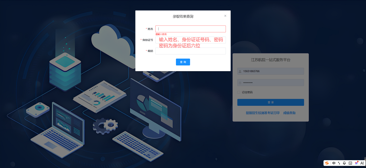 2.在页面指定位置输入姓名、身份证号、密码(身份证号后6位),查询;