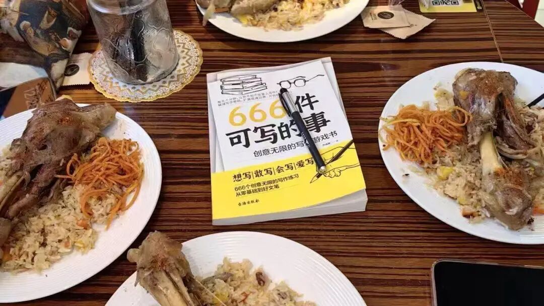 见面是为了传递一本叫《666件可写的事情》的书,里面有很多设问的句子,我们各自写下答案,然后每周聚餐的时间交换。
