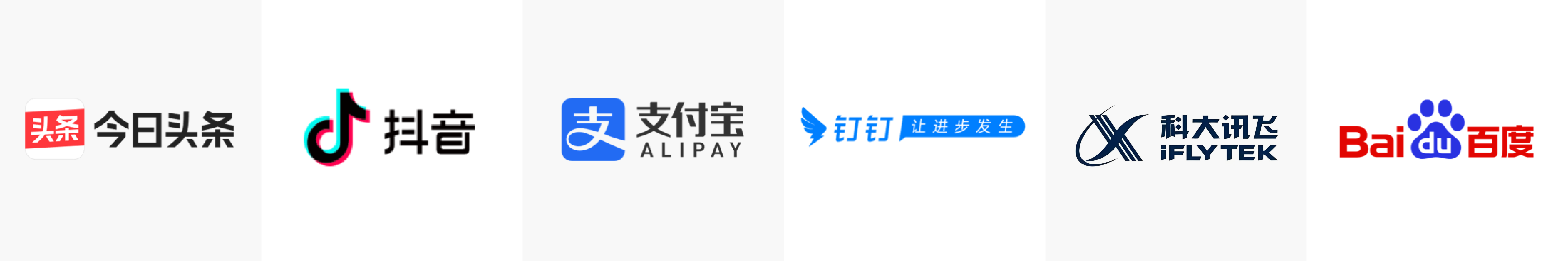 与今日头条、抖音、支付宝、钉钉、科大讯飞、百度等顶尖企业合作