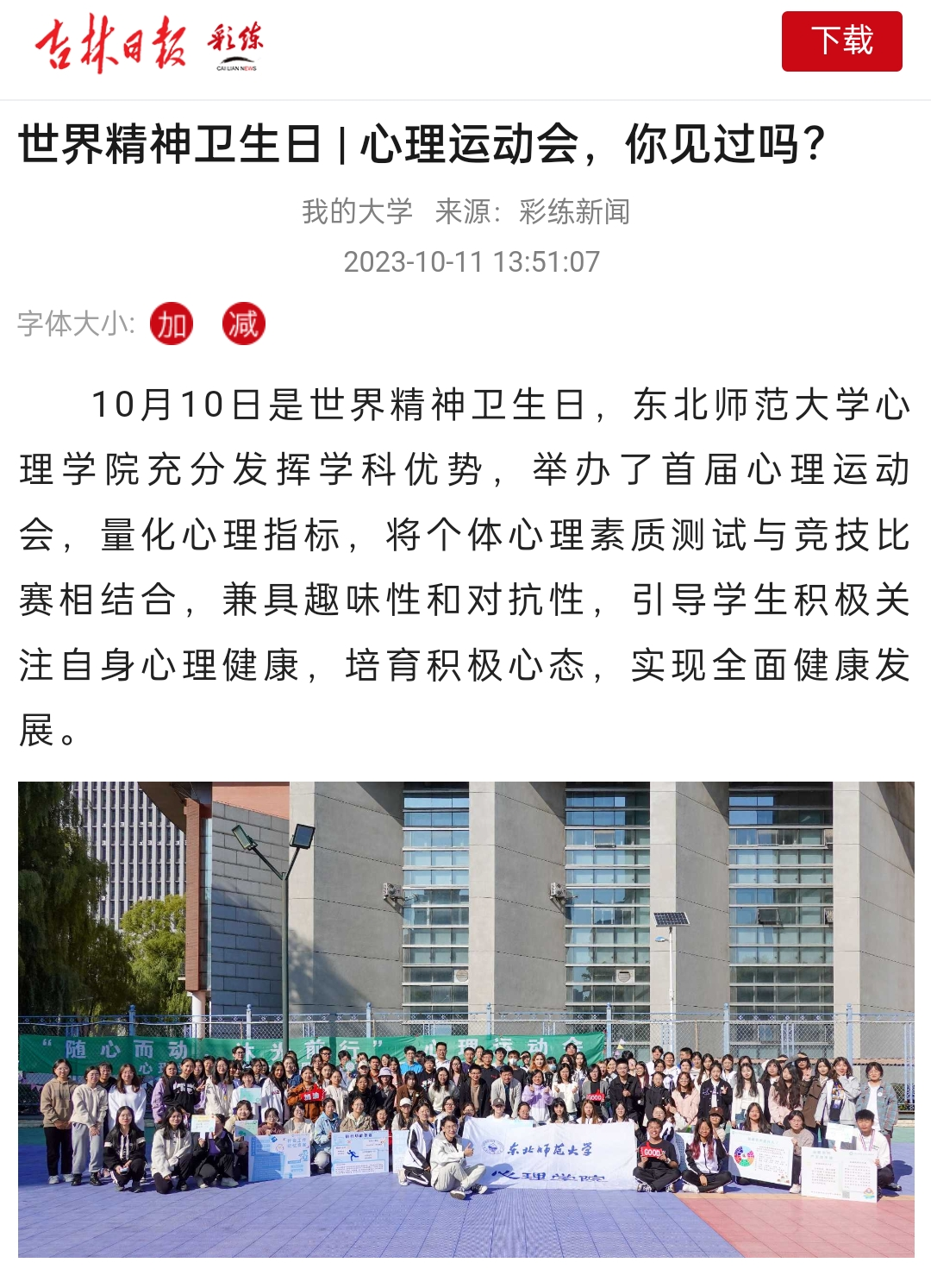 班级连续两年承办“5・25 心理文化节”,推出心理科普路演盛宴,将抽象的心理学知识转化为公众触手可及的互动体验。首创“10・10”世界精神卫生日“心理运动会”,通过跨年级、跨领域的广泛联动,将心理学知识与团队协作、身体运动创造性结合,获中国心理学会专家认可。