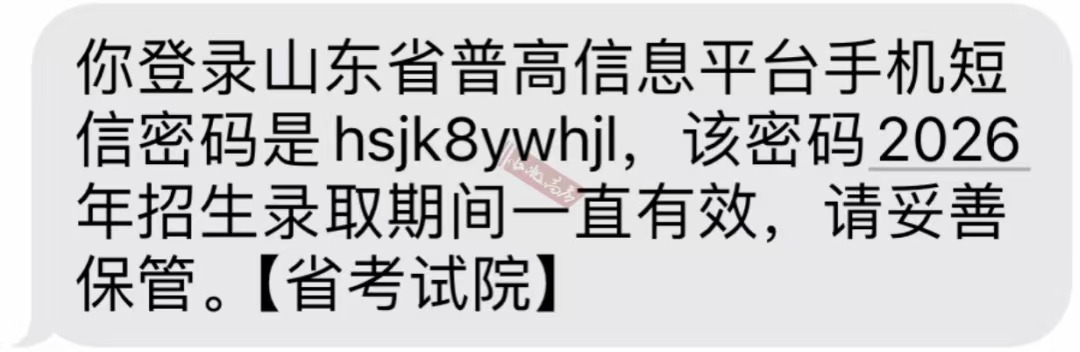其中短信密码为高考报名时获取的手机短信密码,该密码不需要重复获取且始终唯一,如下图所示。