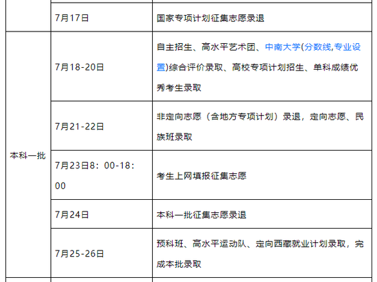 2019湖南高考录取时间尚未公布,以下为2018湖南高考录取时间,可作参考,优志愿会第一时间更新湖南2019高考录取时间。 2018年湖南高考录取结果查询入口开通,湖南考生可点击进入。查询入口 湖南省2018年高校招生录取时间安排如下: