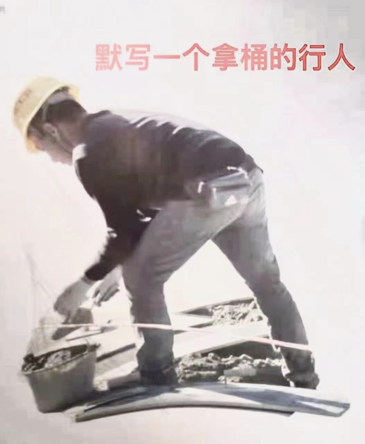 1.考试题目:双人动态组合,1个弯腰干活的泥水匠(照片)+ 1个拿桶的行人(默写)