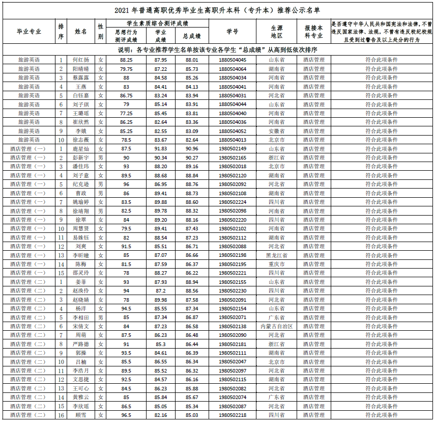 现将2021年普通高职优秀毕业生高职升本科(专升本)推荐学生名单公式如下。