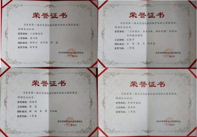 经过激烈的现场对决,最终,临床学院外科学系梁乃新教师 团队荣获副高组特等奖,临床学院外科学系庄乾宇教师 团队荣获副高组一等奖,基础学院药理学 系郭磊教师 团队荣获正高组三等奖,护理学 院姚秀钰教师 团队荣获中级组三等奖。梁乃新教师 团队和同期获特等奖的九位教师 团队将代表北京市参加7月份举行的全国首届高校教师 教学创新大赛。