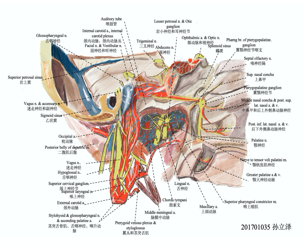 颌面部血管神经走行复杂,是解剖的难点之一。