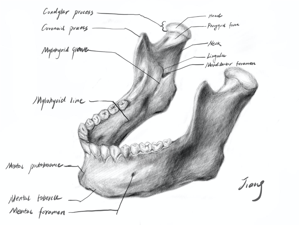 下颌骨素描绘图一幅,注重绘图的精准度。