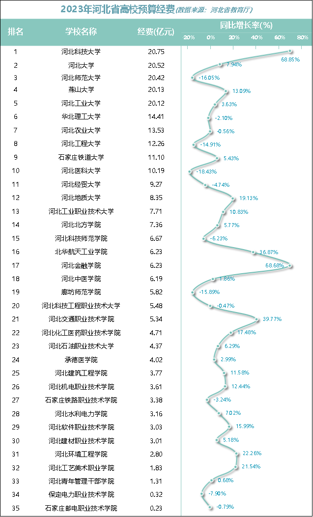 河北省教育厅于1月中旬公开2023年预算经费,其中包含全省35所高校。高校总经费含本年收入及上年结转结余。