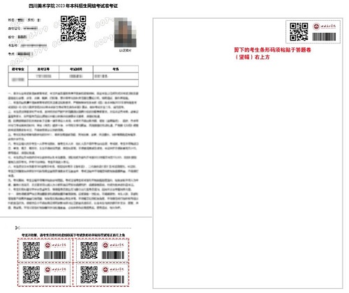 请将准考证下方的条形码沿虚线剪下,并粘贴于每个考试科目答题卷作画面(竖幅)的右上方(见下图)。准考证上条码及二维码包含考生本人信息,不得转借他人使用。