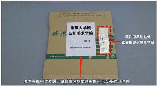 考生需用电脑登录“艺术升”网页版(https://www.artstudent.cn),点击“打印中心”后查看并打印邮寄信息单,并用纸箱按下图所示方法进行粘贴和包装。全部科目答题卷统一封装进一个纸箱内寄出。