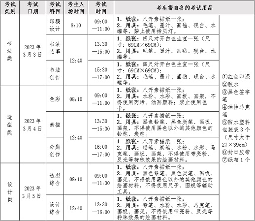 ③书法临摹、书法创作、印稿设计科目可准备2张草稿纸,其它考试科目禁止携带草稿纸;