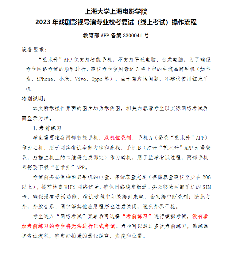 上海大学上海电影学院2023年戏剧影视导演专业校考复试(线上考试)操作流程