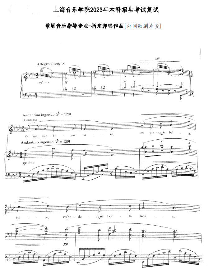 文章来源:上海音乐学院 上海音乐学院2023年本科招生考试复试歌剧音乐指导专业-指定弹唱作品