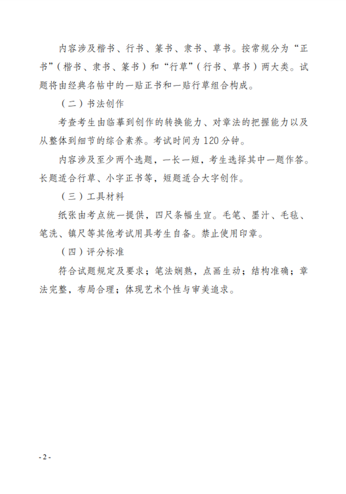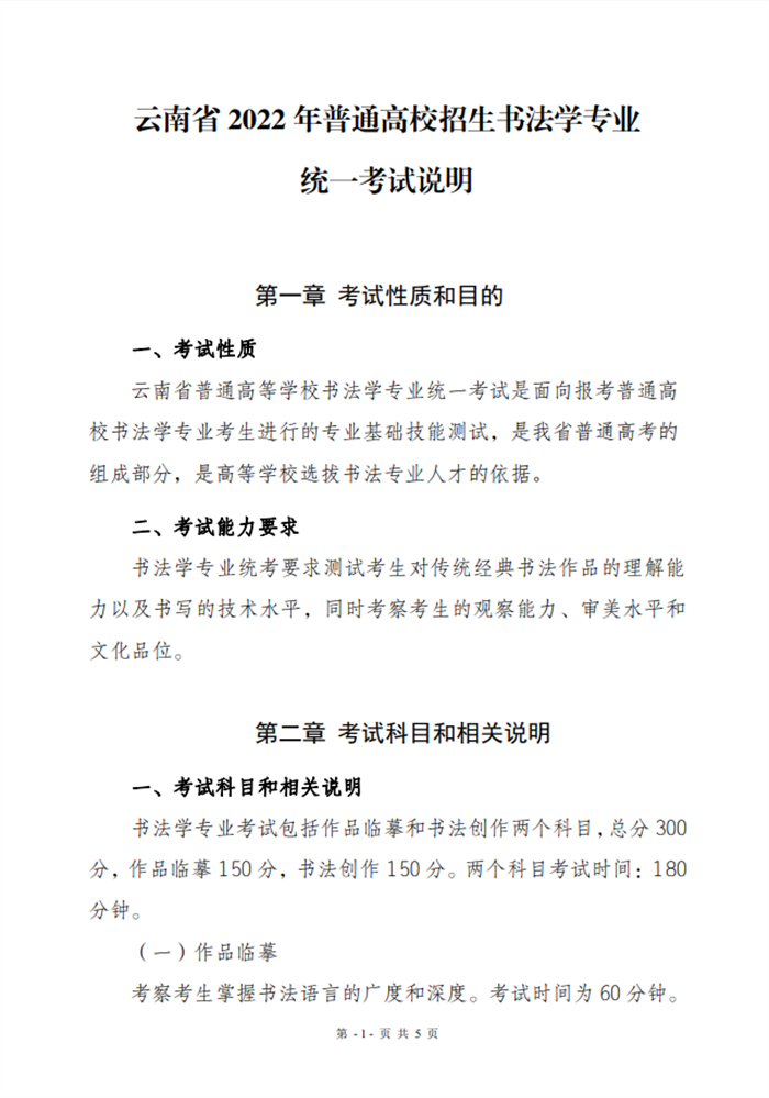 文章来源:云南省招生考试院 云南省2022年普通高校招生书法学专业统一考试说明
