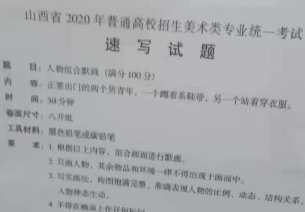2020山西美术联考/统考考题(速写):