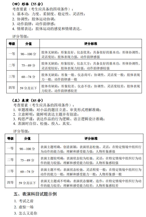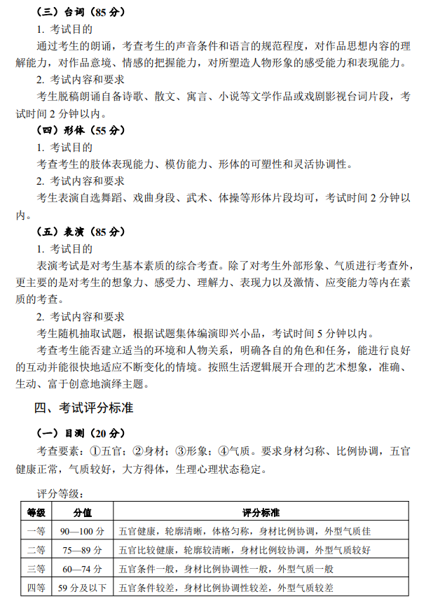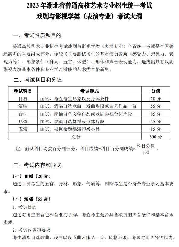 2023年湖北省普通高校艺术专业招生统一考试戏剧与影视学类(表演专业)考试大纲