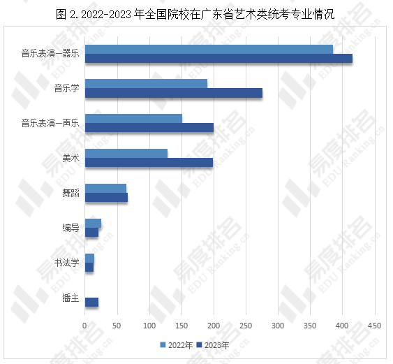 一.全国院校在广东省招生的艺术类专业数增加11.6%
