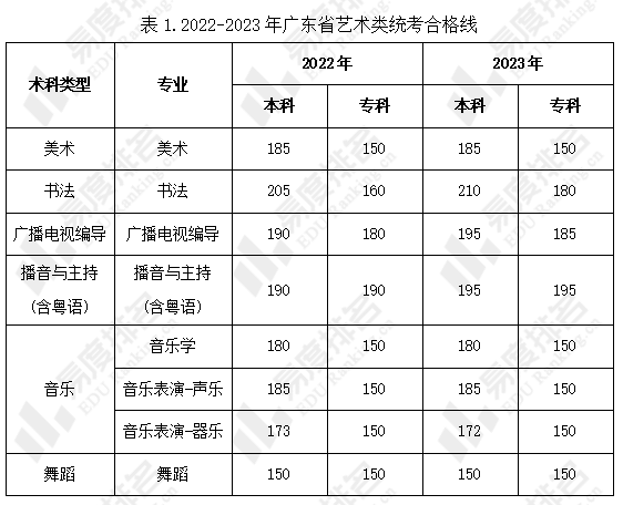 2023年广东省普通高等学校招生艺术类专业统考合格分数线已公布,广东省
