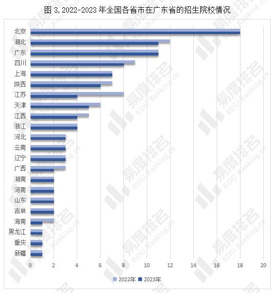 二.2023年各省市在广东省的招生院校数有所减少