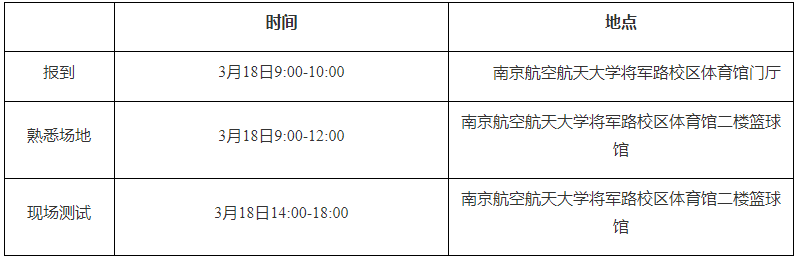 2.报到和测试期间家长及其他陪同人员不可进入校园,考生在相关考试结束后应迅速离开校园,不作逗留。测试期间统一从南京航空航天大学将军路校区西区北门进出。