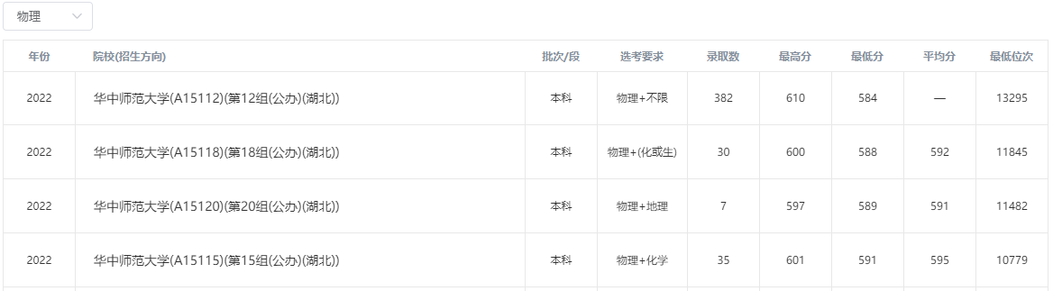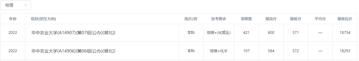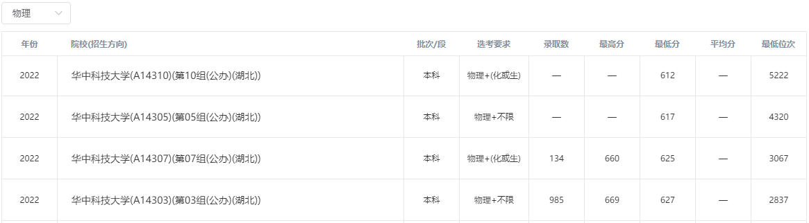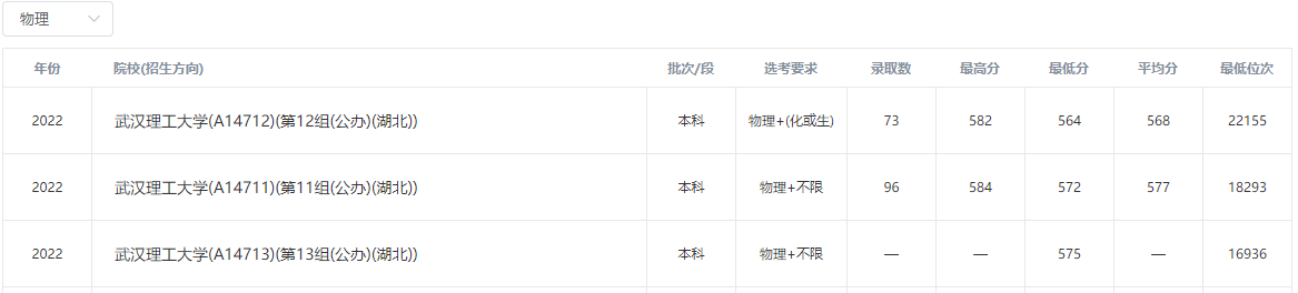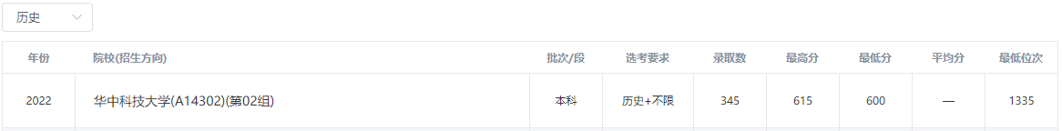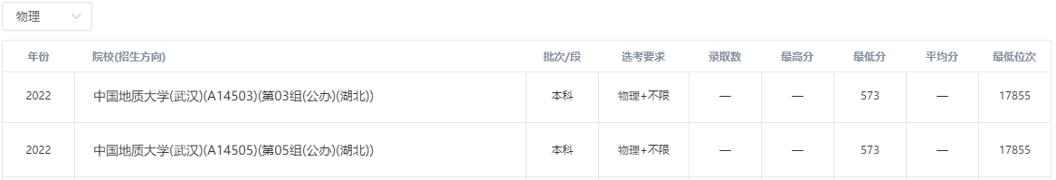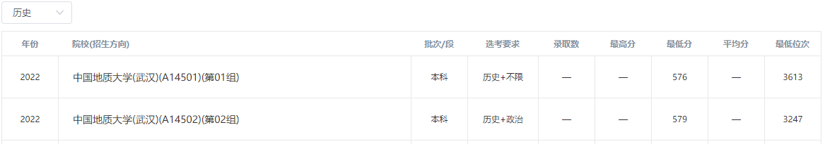 2022年中国地质大学(武汉)在本省历史/物理录取分数线