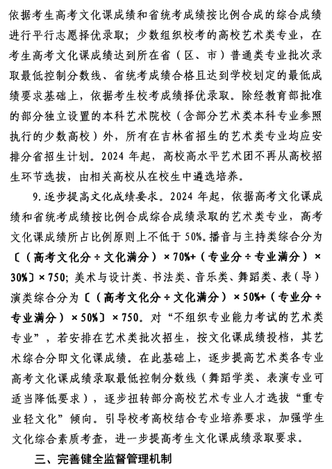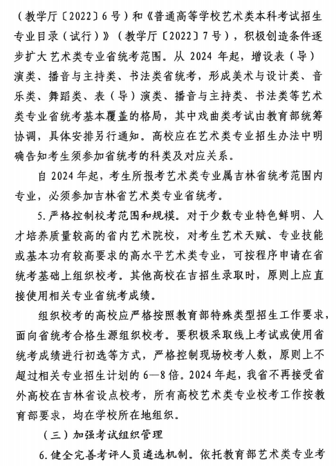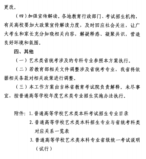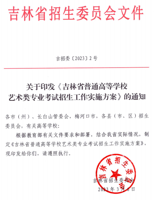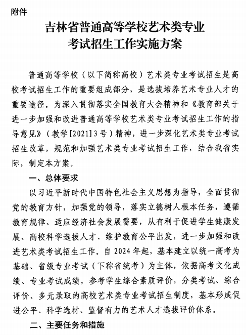 文章来源:吉林省教育考试院 关于印发《吉林省普通高等学校艺术类专业考试招生工作实施方案》的通知