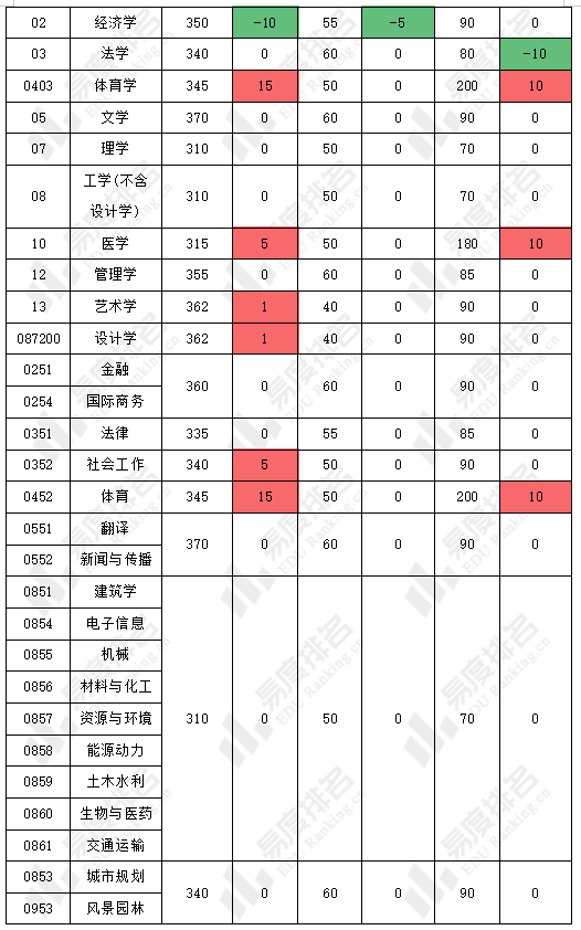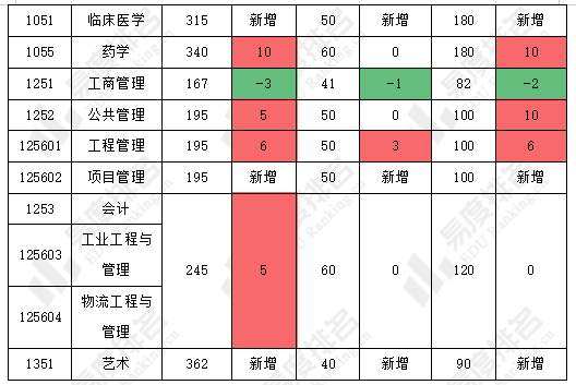相较而言,绝大部分专硕专业的复试基本分数线有所降低,仅应用统计、体育、公共卫生、