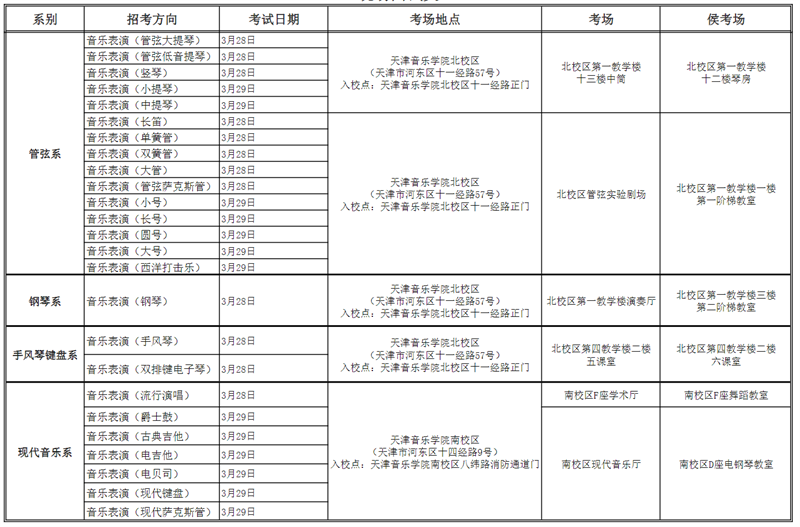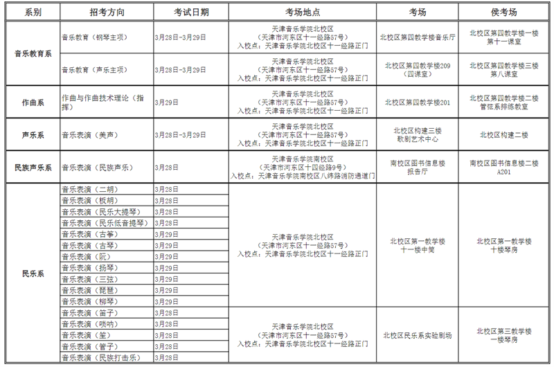 天津音乐学院2023年本科招生考试复试考场安排(现场面试类)