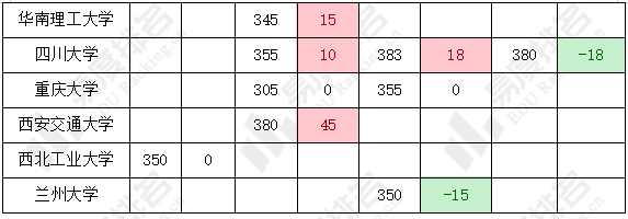 说明:由于各院校工学类专硕专业的基本复试线为多个专业共同划线的形式发布,管理类专硕专业在不同院校有提前批、A线、B线、C线等多种招收方式,本文不含工学、管理类专硕专业的对比。